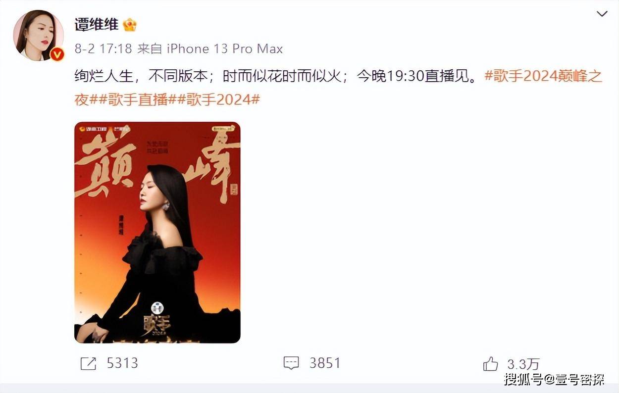 虽然《歌手2024》收官了,但是湖南卫视一向是会“搞事情”的,在8月2日晚上举行了《歌手巅峰之夜》,谭维维作为征战到最后一刻的歌手也出席了该节目。