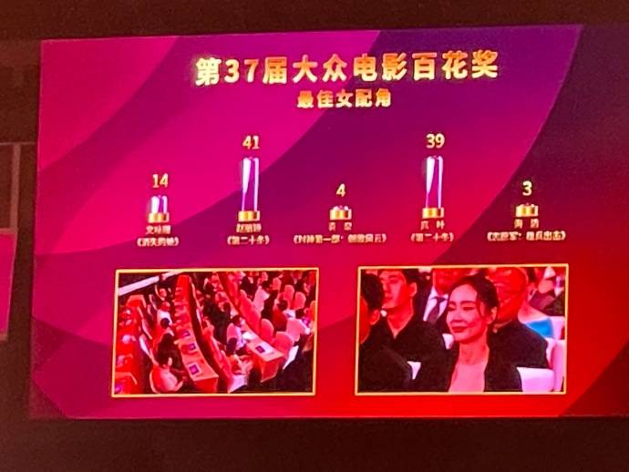 搜狐娱乐讯 8月4日,第37届大众电影百花奖颁奖仪式如期举办,赵丽颖凭借《第二十条》的郝秀萍一角,获得百花奖最佳女配角,这是赵丽颖第一次提名也是第一次获得百花奖表演类奖项。根据现场的投票统计公布情况,同样凭借《第二十条》提名了该奖项的高叶仅仅以两票之差落选。