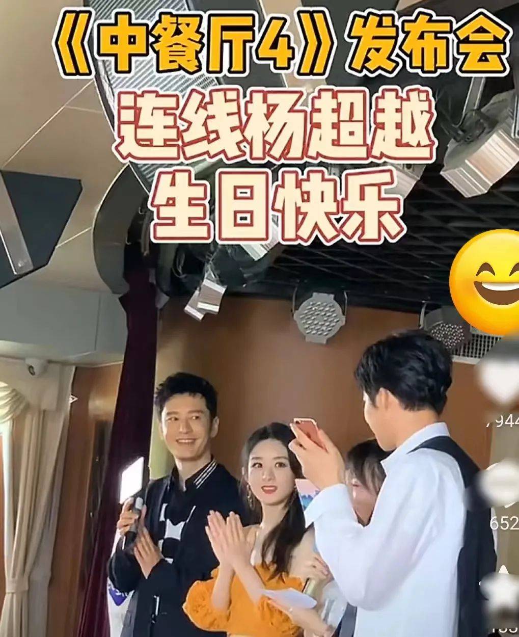 在《中餐厅4》发布会,刘宇宁连麦杨超越,黄晓明赵丽颖跟着一起,祝福杨超越生日快乐。
