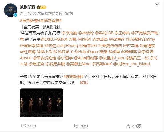 这不,《披荆斩棘的哥哥4》官宣了阵容并且马上就要播出
