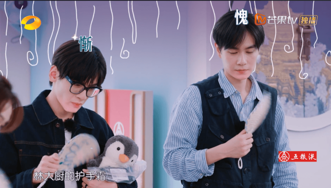 嘉宾初次见面送礼物环节,哥俩儿就尬住了。
