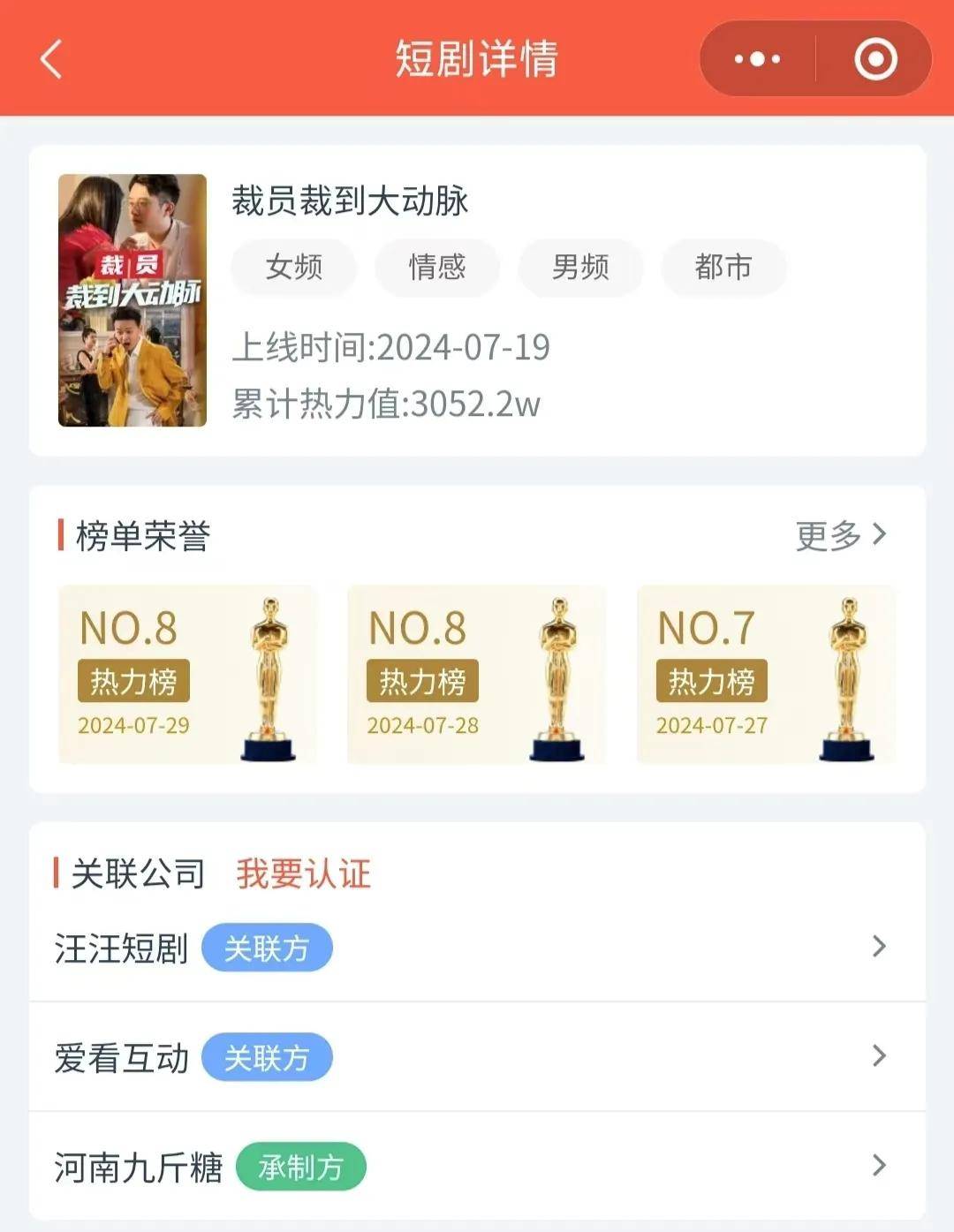 六月下旬的短剧圈,由短剧新秀公司汪汪短剧和爱看互动出品的《裁员裁到大动脉》杀出重围,成为近期话题度最高的爆款短剧。