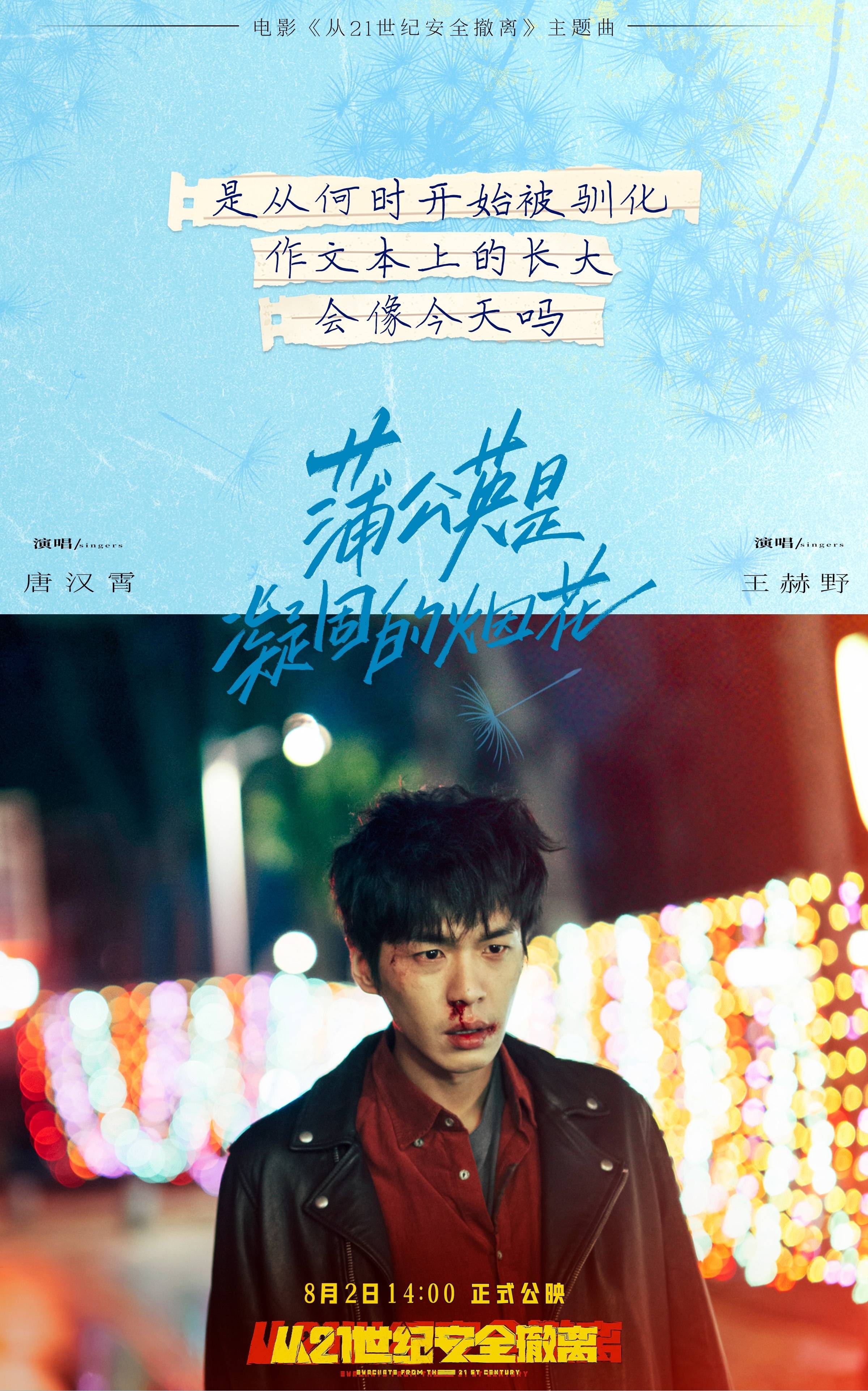 搜狐娱乐讯 暑期档喜剧科幻电影《从21世纪安全撤离》发布主题曲《蒲公英是凝固的烟花》MV,由唐汉霄、王赫野演唱。歌曲的名字使用了影片重要元素“蒲公英”的浪漫解答,“我要用力拥抱这世界就算是毁灭”“我要将这死寂的夜空炸它个粉碎”……