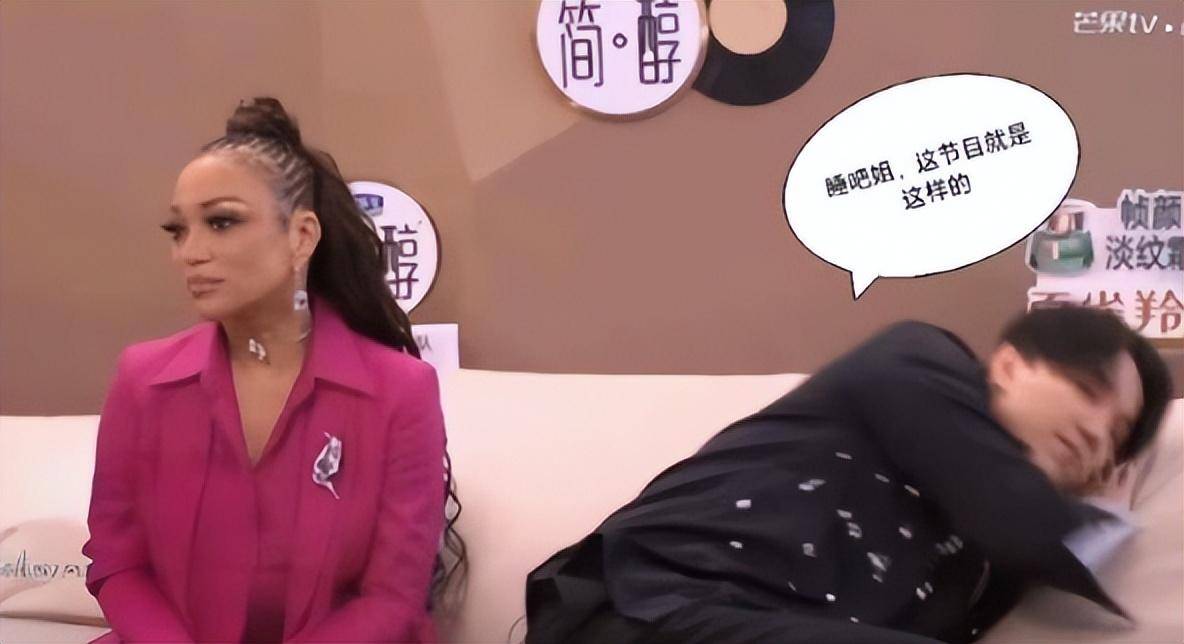尤其是在迪玛希和香缇莫唱完歌后,香缇莫还在紧张的观看其他选手的表现,迪玛希就已经躺在沙发上,呼呼大睡了。