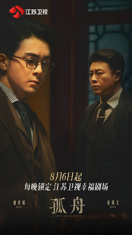8月1日,江苏卫视幸福剧场发布了电视剧《孤舟》的定档讯息:乘孤舟闯荡风雨中,共赴未知命运的波澜,8月6日起,每晚锁定江苏卫视。这部电视剧由曾舜晞、张颂文主演,陈都灵、王玉雯、张丰毅、周一围、印小天、叶青、张瑶等多位知名演员担任配角。该剧讲的则是抗日战争时期,男主潜入敌寇内部的故事。