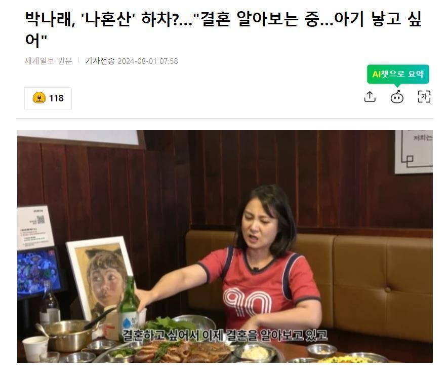 对于,韩版“贾玲”,韩国喜剧演员朴娜莱透露,正在考虑结婚,想要一个孩子,大家怎么看呢?