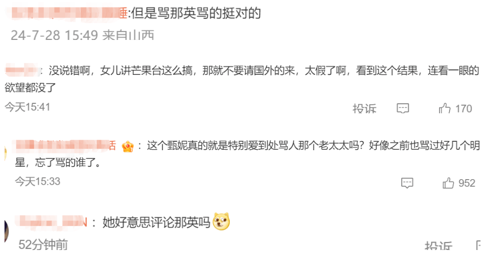 甄妮炮轰那英的行为,有网友表示终于有人出来讲真话了,也有网友觉得甄妮有什么资格来评价那英,并觉得甄妮是在蹭那英的热度。