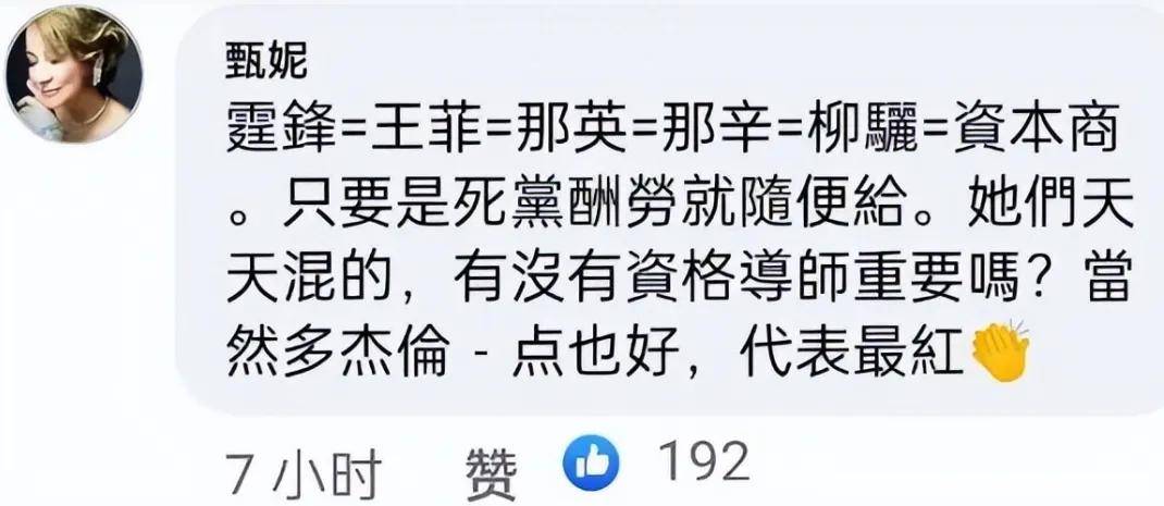 甄妮的话可以说是毫不留情情面,这也跟她在乐坛的地位以及她的性格有关系。