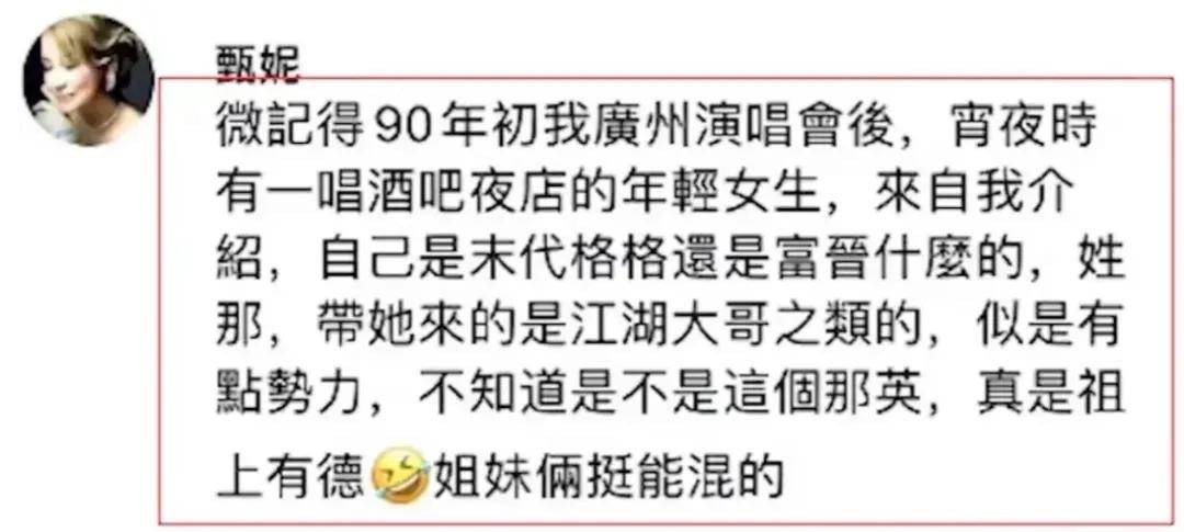 还说那英曾在90年代的时候在夜店驻唱,如今已经是知名歌手,说她们姐妹很会混。