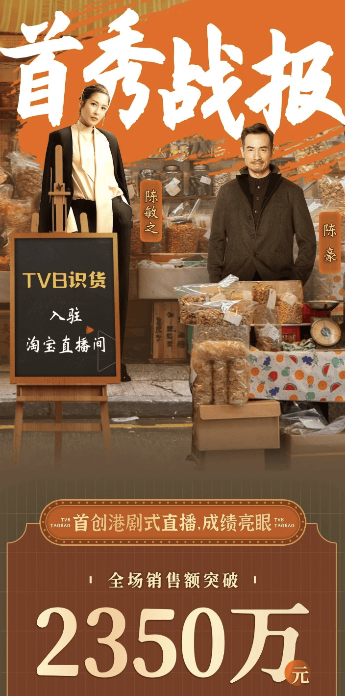 更值得一提的是TVB从去年开始在内地电商业务方面的布局。去年3月,「TVB识货」在淘宝首播,TVB女演员陈敏之首播6小时,销售额高达2300万余元。而第二场开播,这个数字上升到了7000多万。在TVB对内地的业务策略中,加强跨境电商是重中之重。目前的效果也表明,电商业务是明确的TVB内地生张「第二曲线」。