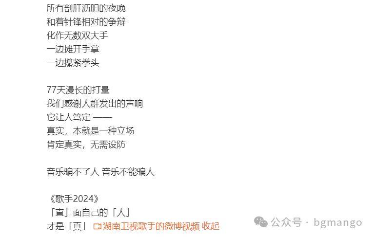 或者,还有很多人会硬杠:音乐这东西,审美很主观,见仁见智,或者是运气不好。反正理由有很多,所以节目组也理直气壮发了这篇:音乐骗不了人,音乐不能骗人。
