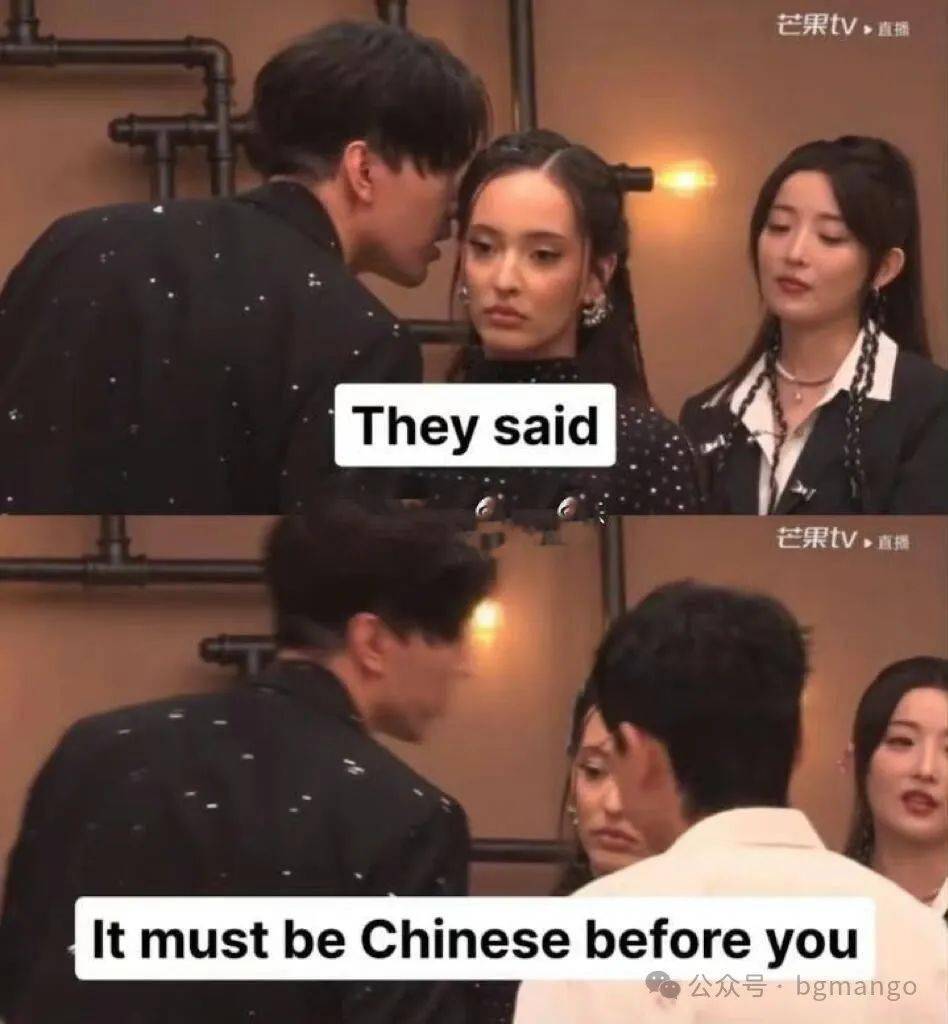 直译过来:“在你们上台之前,我想告诉你们一些事情,当他们邀请我唱歌的时候,他们说必须是中国人在你前面。” 这个befor肯定不是指出场顺序,因为凡希亚是第一个出场的,那英压轴出场。这顺序,懂的都懂。