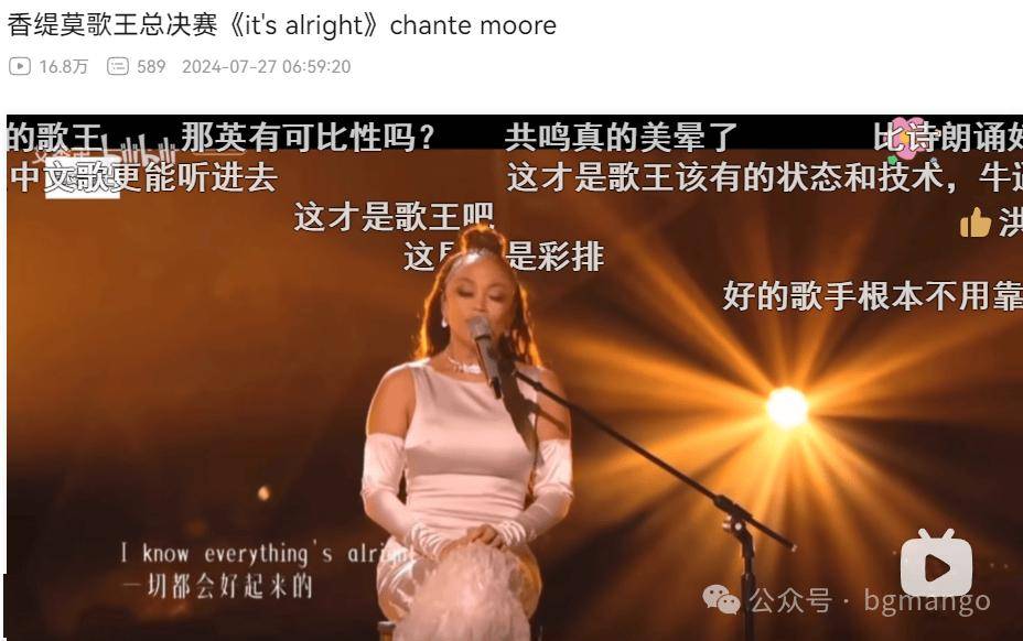 香缇莫原本给第二轮准备了个人独唱《It's Alright 》。现在在B站有彩排视频,强得可怕,有长达半分多钟的哨音,哨音最高到了A6,而且她还是坐着唱的。这不是单纯的炫技,所有的技巧都是为支撑感情服务的,只有钢琴伴奏,婉转悠扬,真诚动人。嗯,难怪会被淘汰。