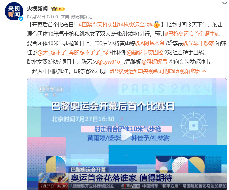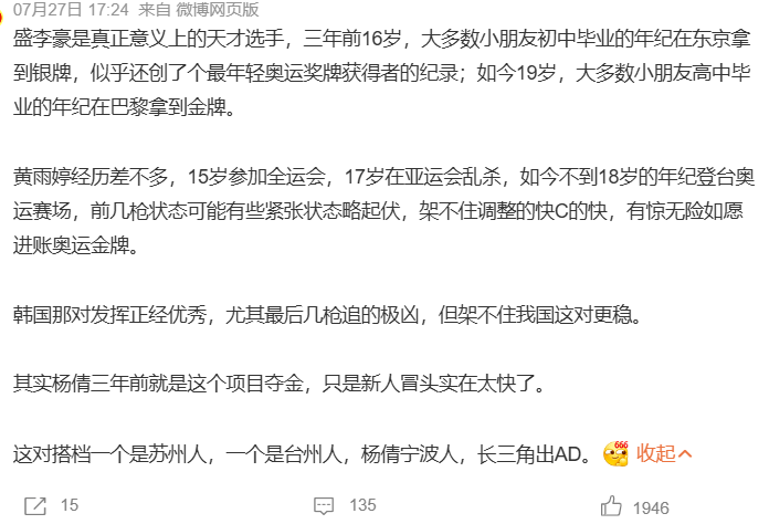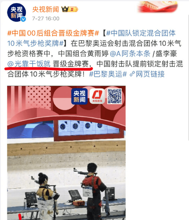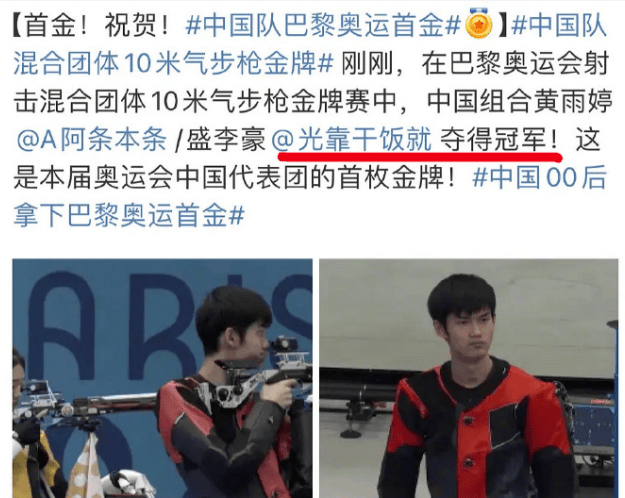 阿条本条,不对,是黄玉婷和盛李豪就默默拿下了本届奥运首金了。