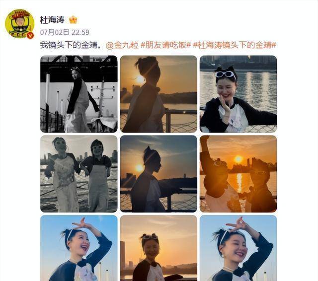 7 月 2 号,杜海涛在社交平台分享了他在综艺节目《朋友请吃饭》中给金靖拍的漂亮照片。