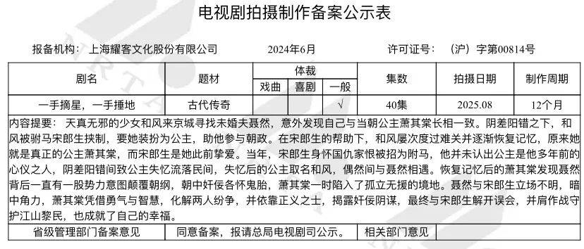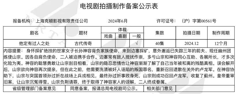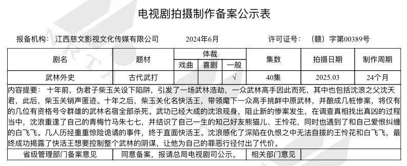 近日,广电总局近期公布了2024年6月全国拍摄制作电视剧备案公示情况。