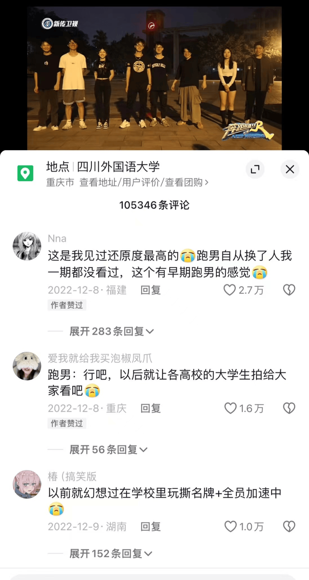 “说实话那个开头我以为是新一期奔跑吧”、“味儿太正了”等评论背后,“仿真度高”恰恰是彼时大学生自制综艺最重要的突围方向。