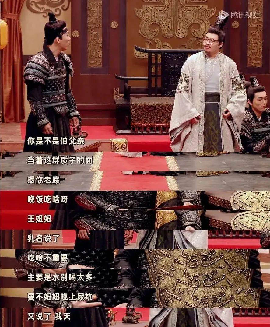 人家古装剧的父王是发金豆子,《质子的愿望》里的寒王逢人就发地瓜干~人家帝王都是能屈能伸,到了他这却是“能屈能屈”,为了讨好擎王,他直接“我泫了浇给”,还拉着自己儿子跳傣族舞,儿子公子放直接倒(社)地(死)。