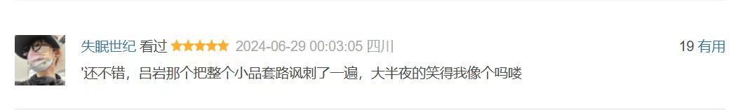 可以说《喜人奇妙夜》为观众提供了一种纯粹的近乎"发癫"的快乐,深入到生活内里以喜剧的方式来表达升华,且与当代人的精神状态不谋而合,《喜人奇妙夜》直接掀翻喜剧好笑的天花板,为观众提供更纯粹的快乐。