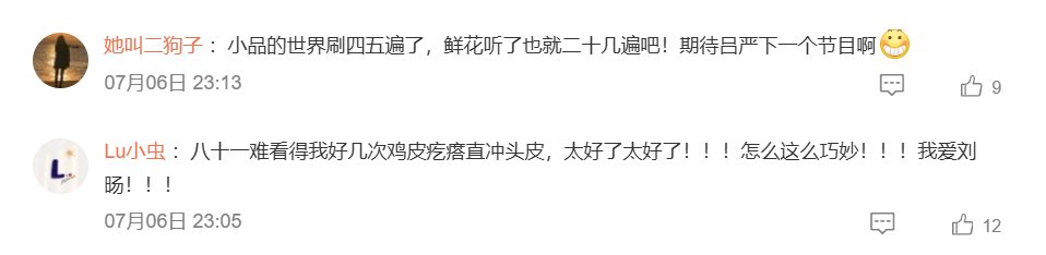 从观众评论能够看出,节目在感知并捕捉社会情绪上的成功,《喜人奇妙夜》通过放大生活细节、对经典内容喜剧式重构的方式,将这些社会情绪转化为癫狂好笑的喜剧小品,戳中观众的笑穴,直接掀翻了喜剧的天花板。