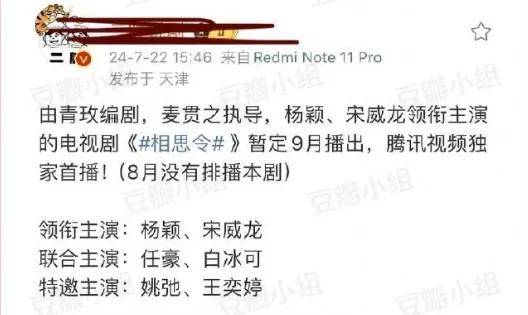 更有网传说她与宋威龙的剧《相思令》暂定于今年9月播出