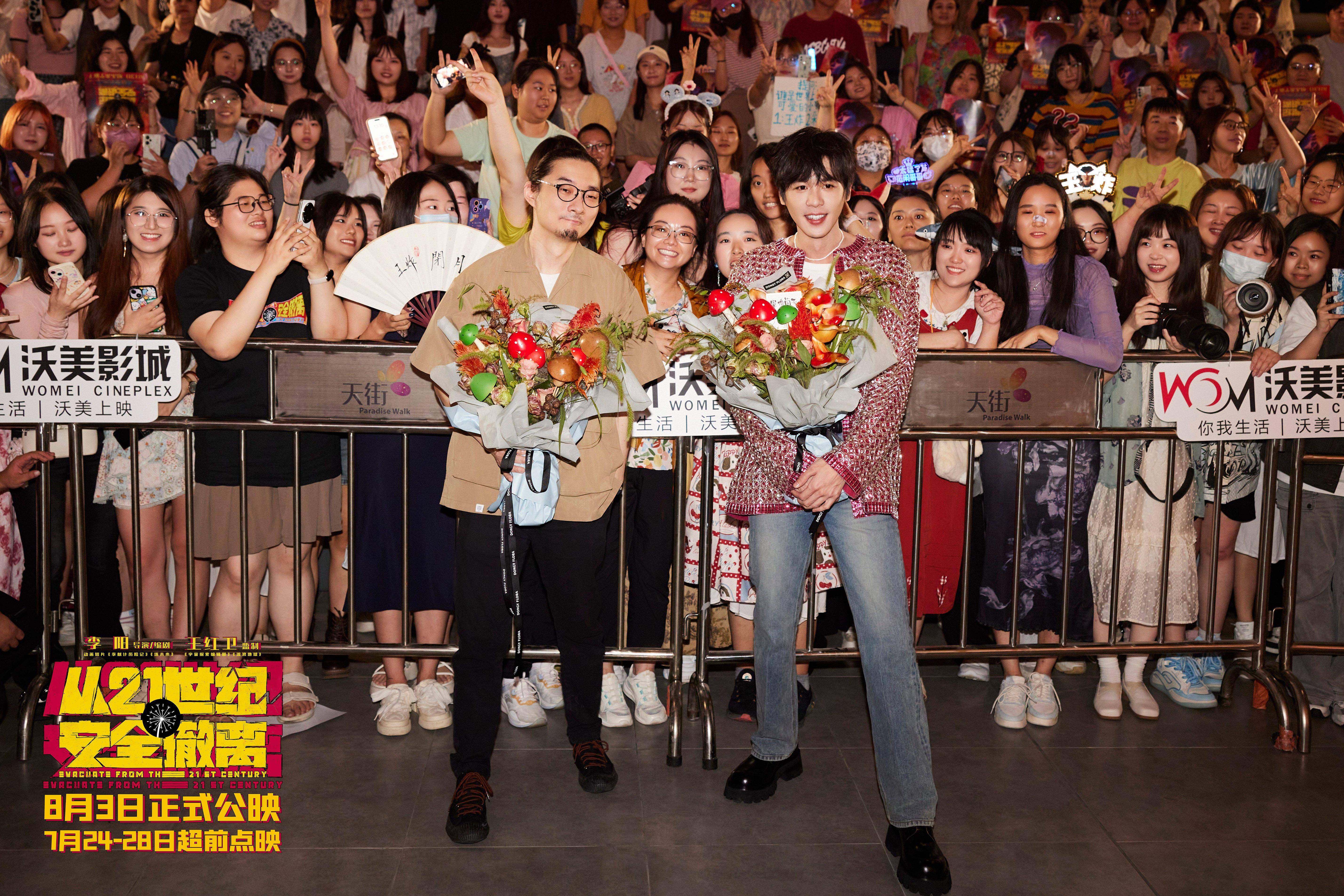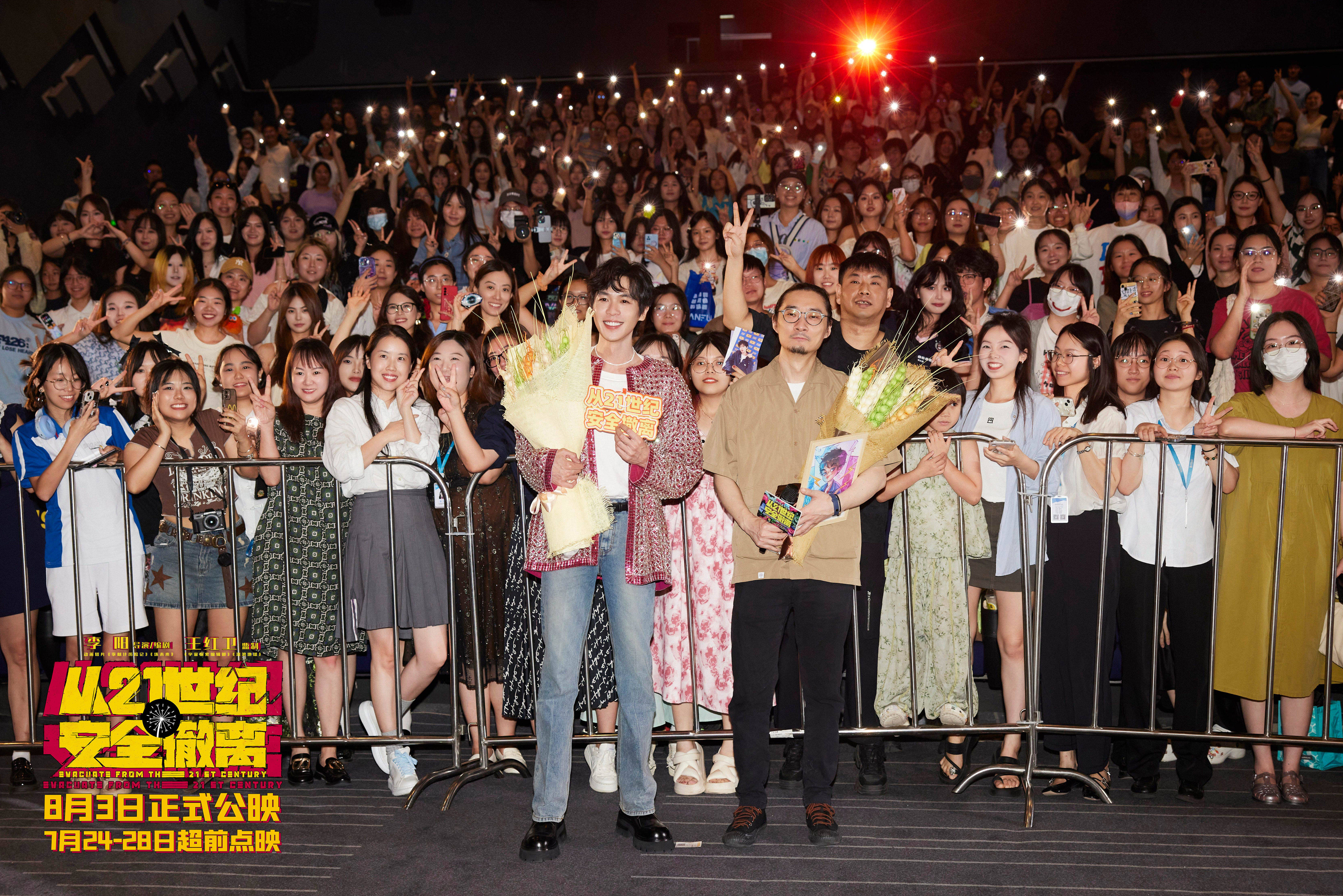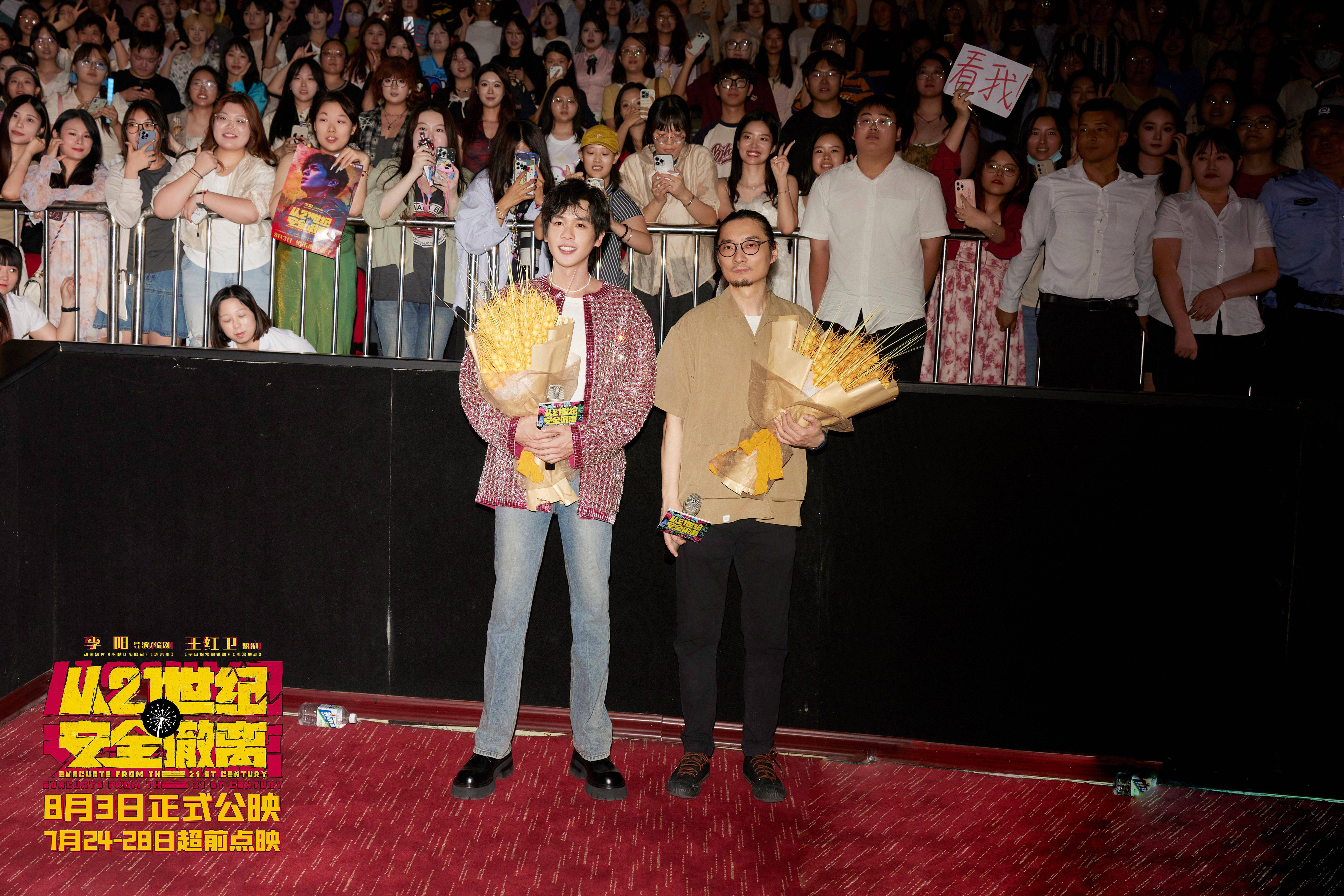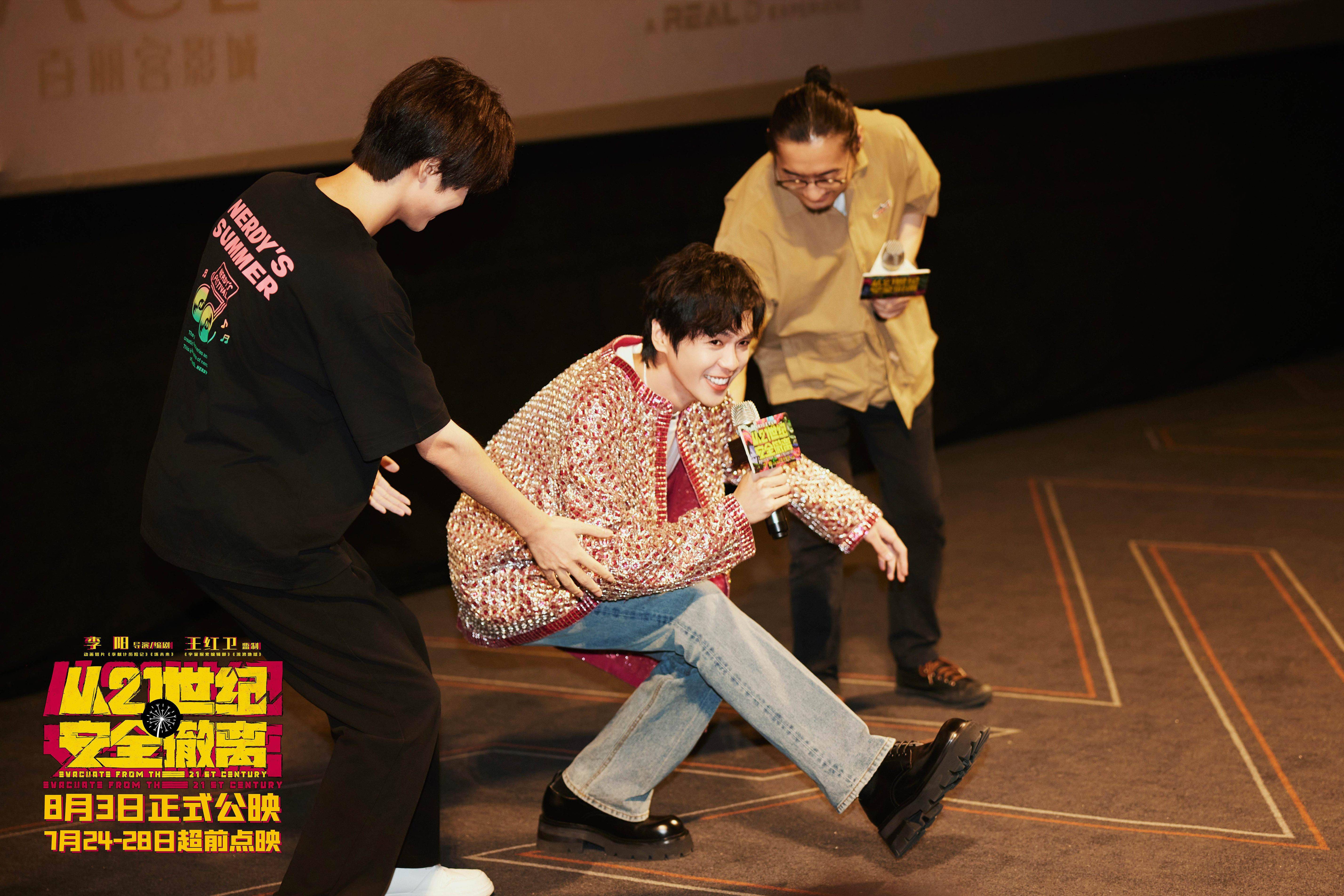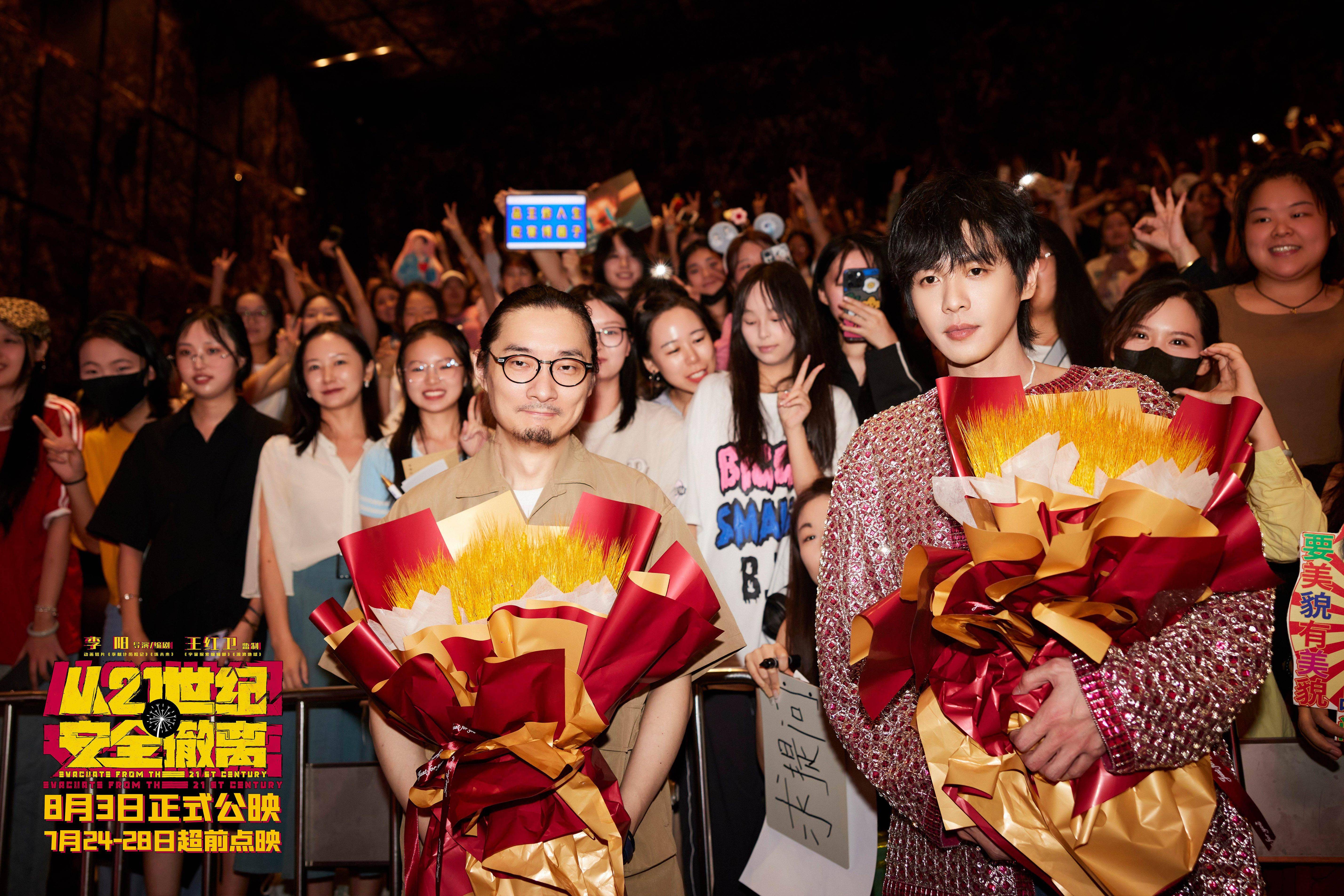 7月22日,导演李阳携电影中王炸饰演者张若昀,空降江城武汉开启《从21世纪安全撤离》的全国路演,在夏天的最后一个节气“大暑”,与观众面对面一起迎来那个记忆里最美好的暑假,分享“最符合当下年轻人精神状态”的这部暑期档最会整活儿的“王炸”的幕后故事。放映过程中,现场反响极其热烈,爆梗接二连三,观众笑声不断,大量色彩缤纷极具想象力的画面令人大饱眼福叹为观止。电影中对于回不去的青春、打不倒的情怀、“不要变坏啊”的热血告白,也让不少观众直呼“又好笑又动人”,美丽的精神状态也让观众为影片送上了“赛博菌子”的称号。现场更是为主创送上了“赛博菌子”花束,跨越次元壁表达对影片和主创的喜爱。
