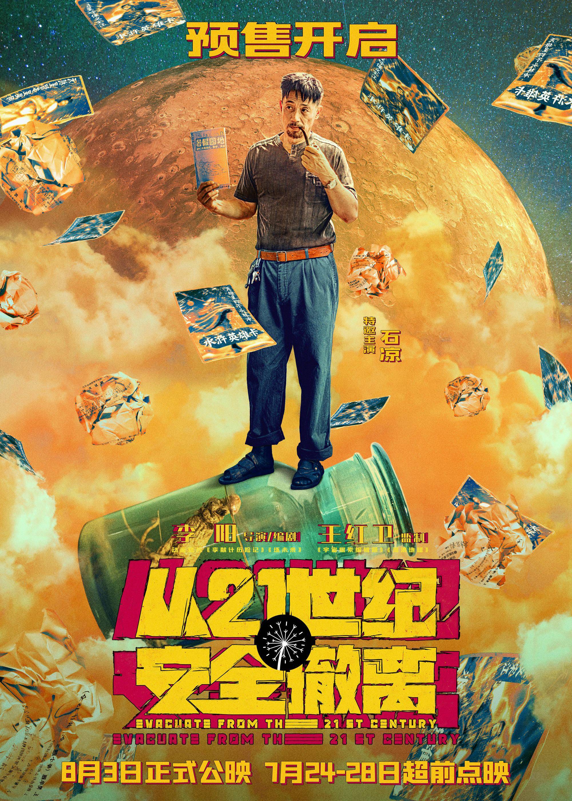 今日,由豆瓣高分短片《李献计历险记》、《坏未来》导演李阳执导、《流浪地球》系列电影监制及剧本指导王红卫监制的喜剧科幻电影《从21世纪安全撤离》发布角色海报与预售海报,正式开启预售。预售海报融合了之前纸张撕裂的布局风格,王炸(张若昀饰)与刘连枝(钟楚曦饰)背着层层叠叠的网线奋力向前奔跑逃离着身后的一切,奔向那盛满童年珍贵回忆的铁盒,铁盒撕开一角露出的泡泡糖、弹珠、卡带等童年元素也暗藏片中细节。角色海报则用鲜艳的色彩搭配呈现出赛博梦幻感的K星世界,将高饱和度的色彩、超现实的元素解构、过去与未来双时空的多重素材融合运用到极致,并将张若昀、钟楚曦、宋洋、吴晓亮、朱颜曼滋、李晨浩、温峥嵘、石凉、陈一辰、李卓钊、康启轩、马凡丁等饰演的一众角色的命运密码藏于画面之中,等待观众走进影院共同破解角色命运谜题。同时,影片也于7月22日开启全国路演,导演李阳、主演张若昀空降首站路演城市武汉,在夏天的最后一个节气大暑当天给江城带来暑期档“王炸”,与观众近距离接触畅聊电影银幕内外的热血有趣故事,现场更有18岁和38岁的真实影迷走心分享观影感受,内核共鸣收获无数感受。电影《从21世纪安全撤离》讲述了18岁的“王炸”兄弟三人组阴差阳错之下获得了打个喷嚏就能往返未来二十年的超能力,拯救世界与自己的故事。影片自7月18日开启超前点映以来,口碑持续爆棚,连续4日获暑期档点映上座率、场均人次双料第一的亮眼佳绩,近90人的场均人次更是5年来暑期档点映场均人次TOP1,其独特新颖的风格和脑洞大开的剧情也收获网友一致好评,令没有抢到点映票的观众大呼“赛博菌子不够吃”,迫不及待地希望早日与电影相见,一起感受“从未在电影院有过的体验”。影片也将于7月24-26日开启全国53城限量点映,7月27-28日开启全国限时点映,8月3日正式上映,预售现已经开启,K星信号即将接通和“王炸”兄弟团一起拯救世界!