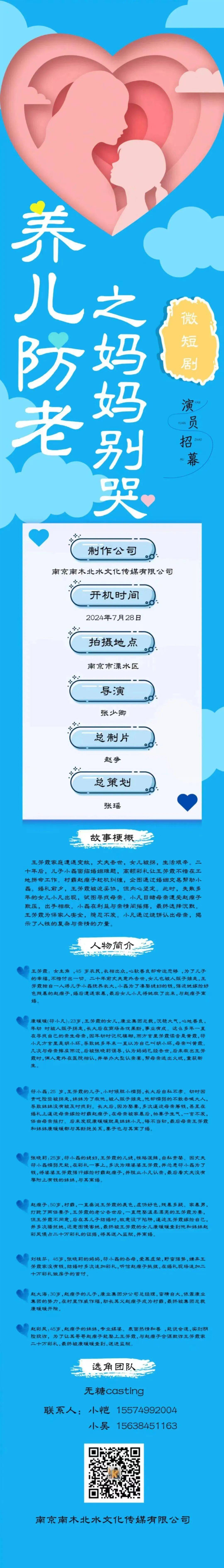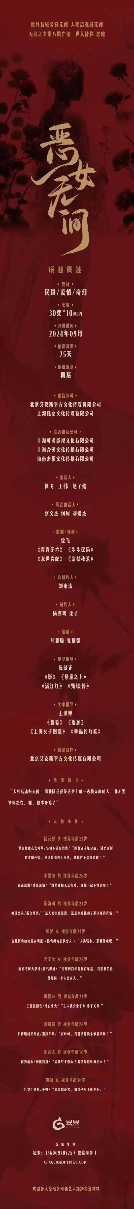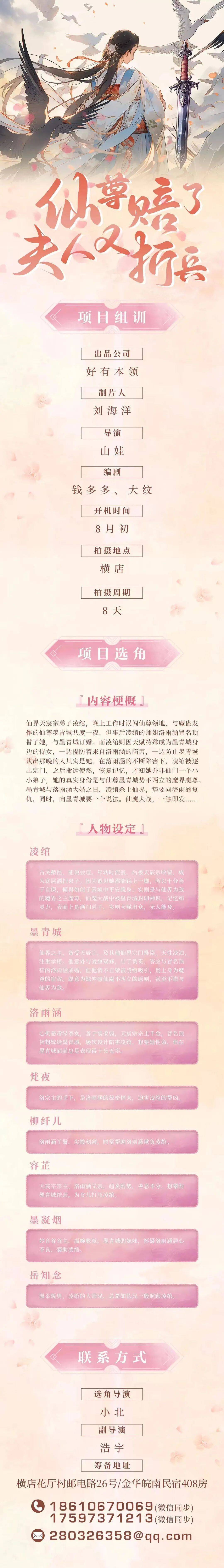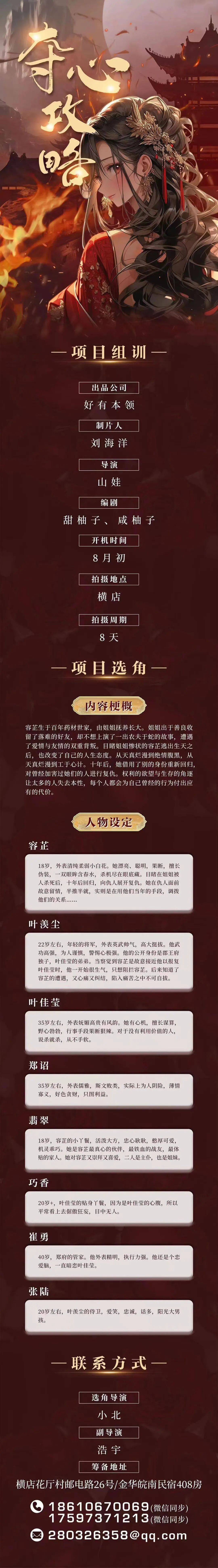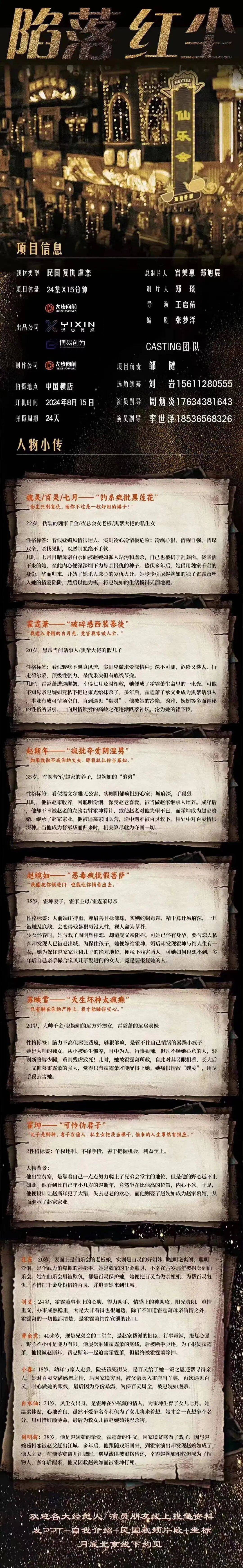 剧中角色均未定,欢迎各大经纪公司和演员朋友投递资料。