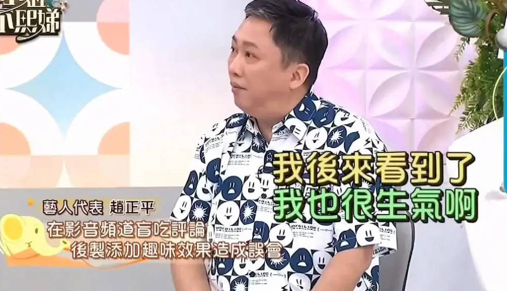 搜狐娱乐讯 近日,赵正平回应在自己的视频内容中称小S为“小曲线”,他说是后期制作的,自己并没有叫小S“小曲线”,并表示自己后来看了视频也很生气,怕被小S的节目封杀。