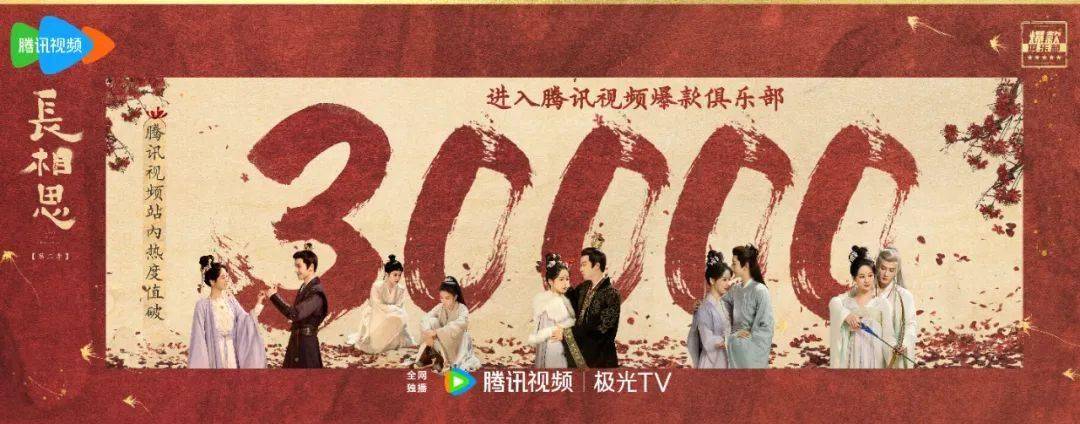 30000 腾讯视频站内热度,话题硬核,无论口碑亦或热度,《长相思 第二季》为古装江湖留下传说。
