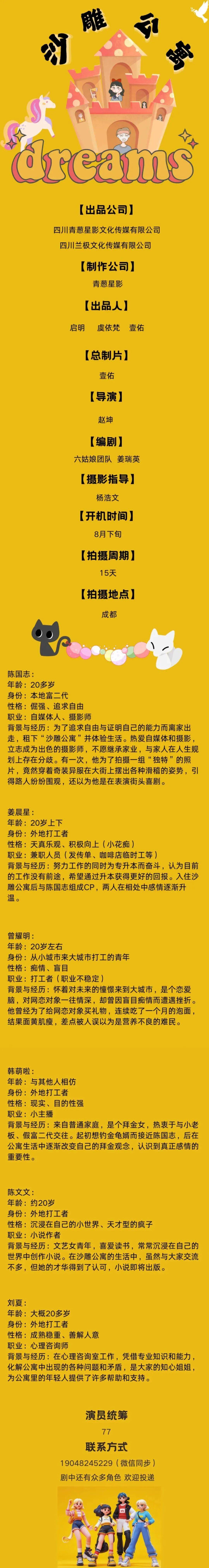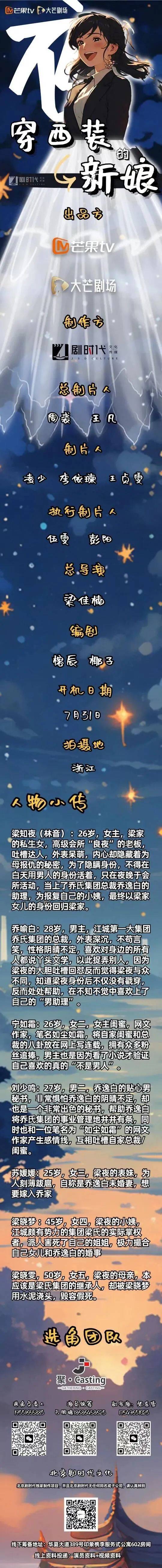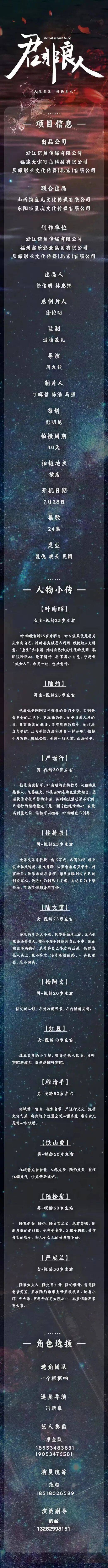 剧中大量角色未定,欢迎各大经纪公司与演员朋友投递资料。