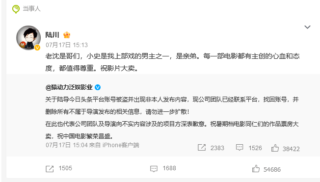 看来,影视圈内的互动也是非常有意思的呢。导演陆川的回应也赢得了观众们的尊重和支持。他的发声不仅为自己维护了合法权益,也为整个电影行业树立了一个积极的榜样。