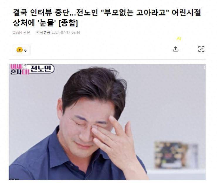 在综艺节目《现在我独自一人》中,看似贵族的韩国知名男星,演员全卢民,坦白了自己令人心碎的童年家族史,连观众都感到震惊,所有人都希望他今后的路能够走得一帆风顺、幸福美满。