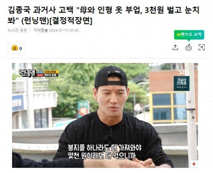 韩国知名男星,金钟国回忆起自己的童年,当时他帮助母亲做副业,与母亲一起卖娃娃衣服的往事。