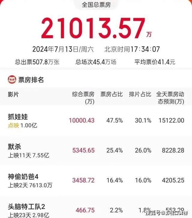 实质上,沈腾和马丽主演的这一部《抓娃娃》正式上映的时间是7月16日,7月13日的周六当天,算得上是提前点映。尽管是提前点映,也是全国影院大规模、无比默契选择用脚投票,不约而同将这部电影默认了,点映就是上映,占比了36%的排片,压倒了其他所有电影,独占鳌头。