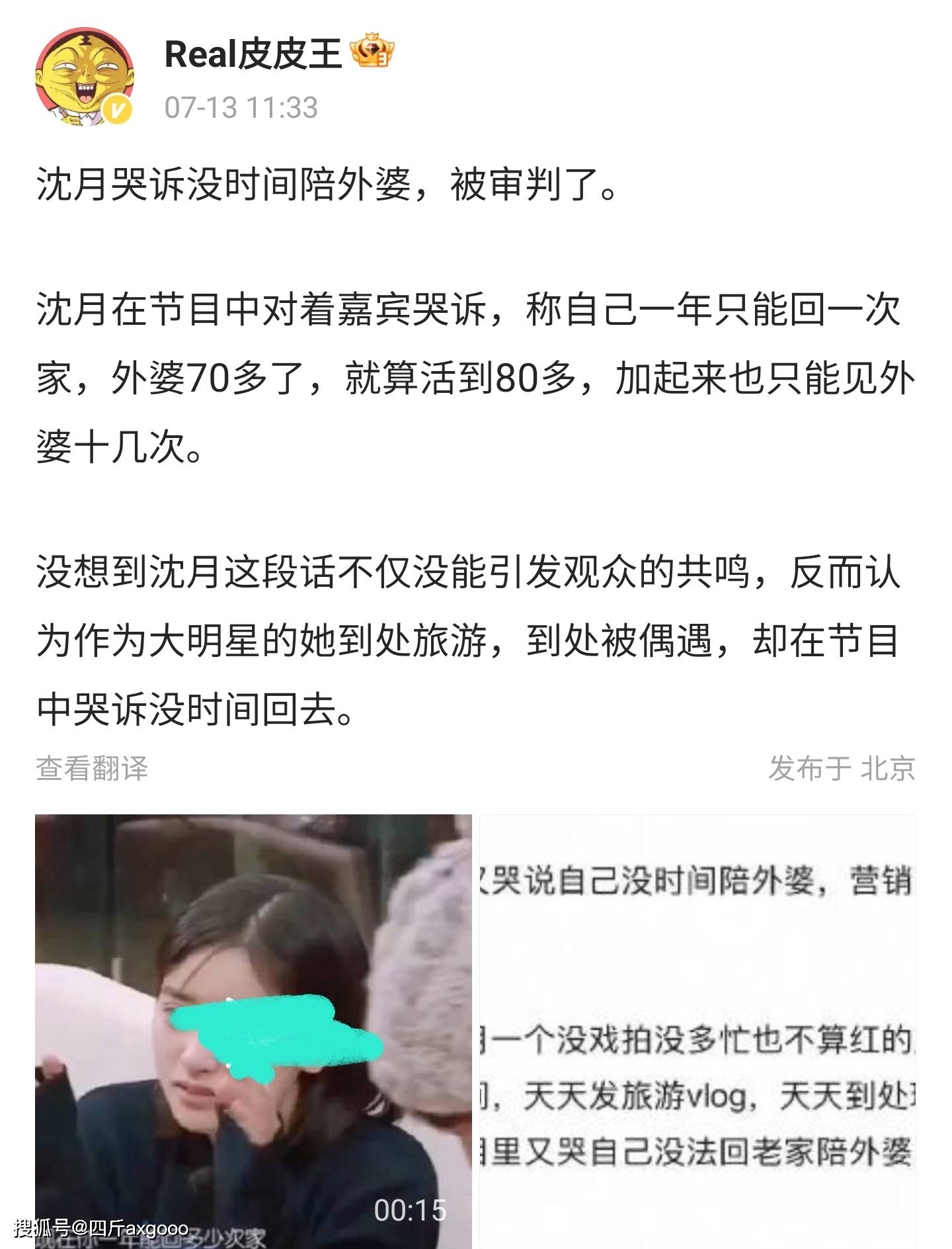 7月13日,知名女演员沈月在某综艺节目中提及自己“没时间陪外婆”的话题,意外地引发了网友的集体吐槽和热议。