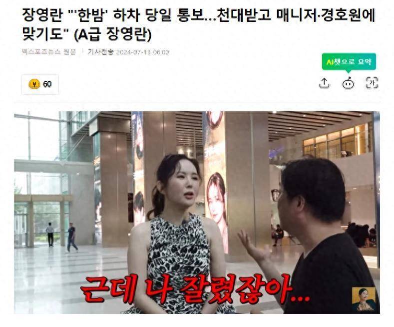 对于,韩国知名女星,演员,主持人张英兰透露,新人时受轻视被解雇,当天就被告知要离开,我自己要去理论时,还被经纪人和保安打了,大家怎么看呢?
