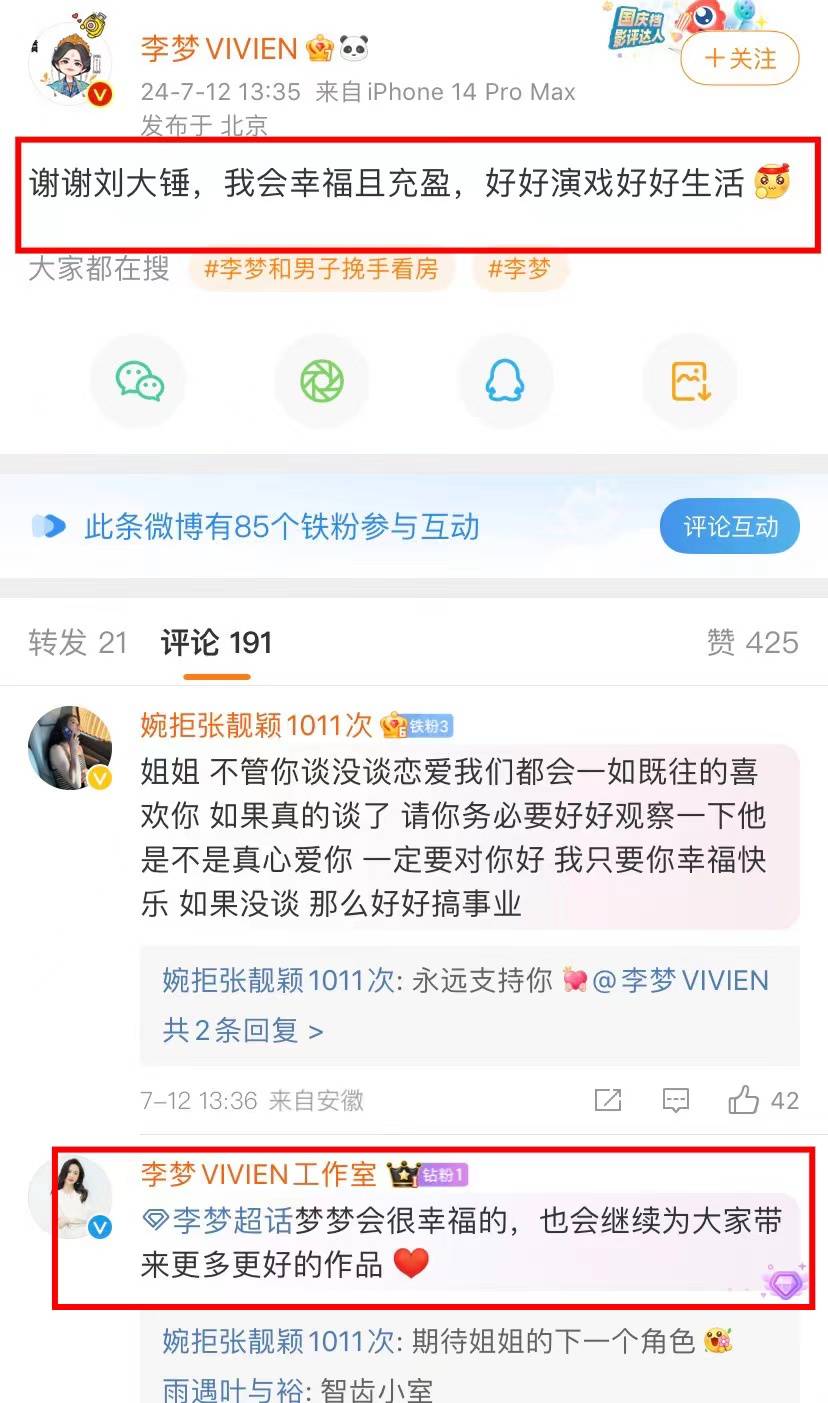 李梦居然回应了,不像其他明星被拍到耍赖,直接发文说,谢谢狗仔,自己会幸福且充盈,好好生活好好演戏。