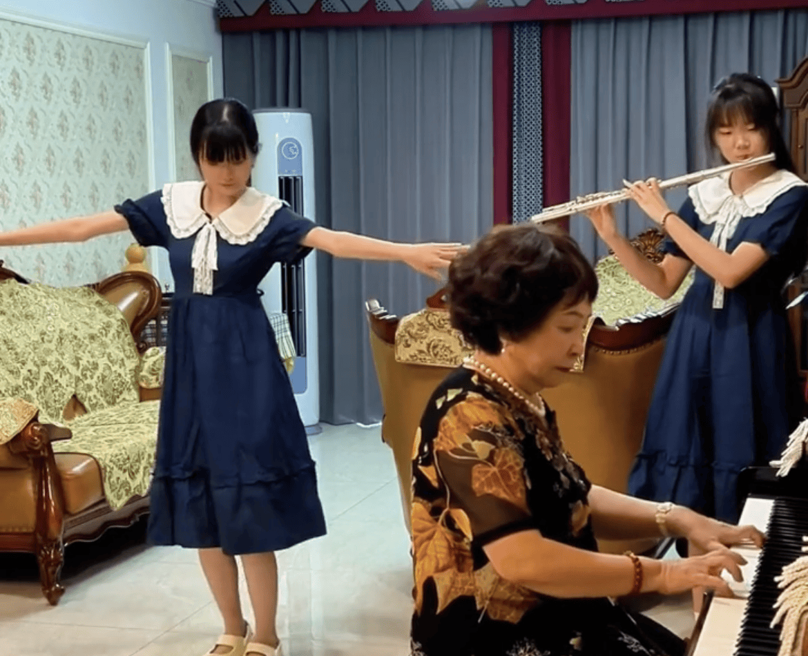 曝光的画面中,双胞胎女儿一个跳舞,一个吹长笛,模样也是长开了,而盛海琳则负责弹钢琴,当跳动的音符在房间内回响,不知道远在天边的姐姐、姐夫和爸爸是否能够听到呢?