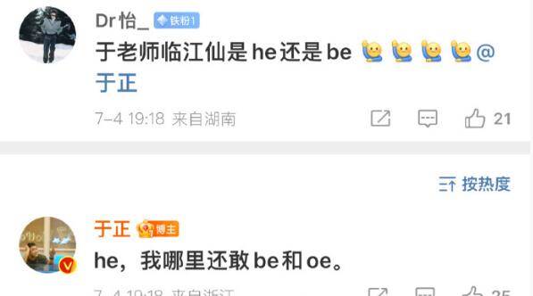 搜狐娱乐讯 近日, 于正在评论区回应粉丝对于新剧大结局的问题,他表示:“he,我哪里还敢be和oe”,he是happy ending,而be则是指bad ending,oe则是指open ending。据悉,稍早他制作的《墨雨云间》因为结局问题引发热议。