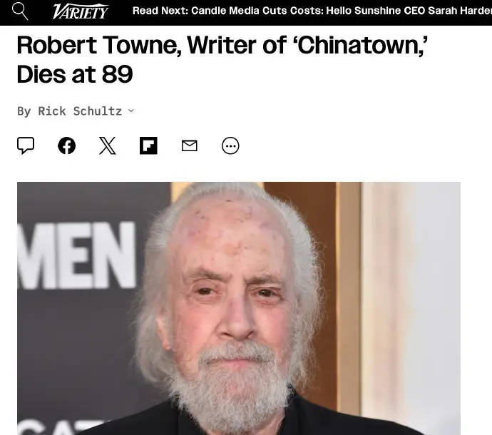搜狐娱乐讯 据外媒报道,好莱坞知名编剧《唐人街》的编剧罗伯特·汤去世,享年89岁。 据悉,罗伯特·汤生于洛杉矶,60年代初开始从事剧本创作,1973、1975年分别以《最后细节》《洗发精》两次获奥斯卡最佳电影剧本提名,1974年更以《唐人街》荣获第47届奥斯卡最佳原著剧本金像奖。1982年开始担任导演,他自编自导的《双姝奥运情》,受到各方好评。