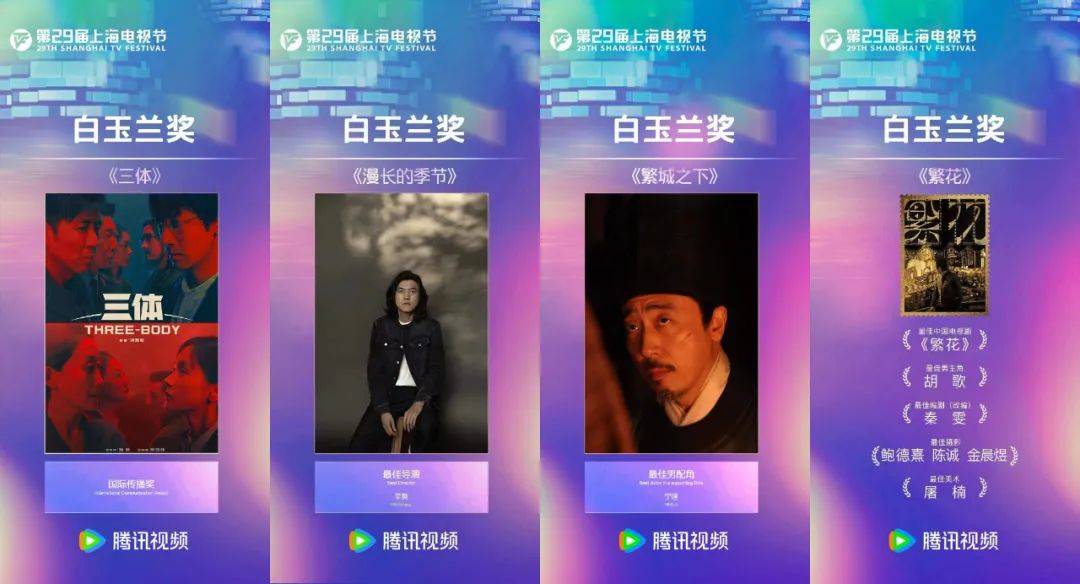 年度爆款剧集《繁花》一举斩获最佳中国电视剧、最佳男演员、最佳编剧(改编)、最佳摄影、最佳美术五项大奖,腾讯视频无疑是本届白玉兰的最大赢家。