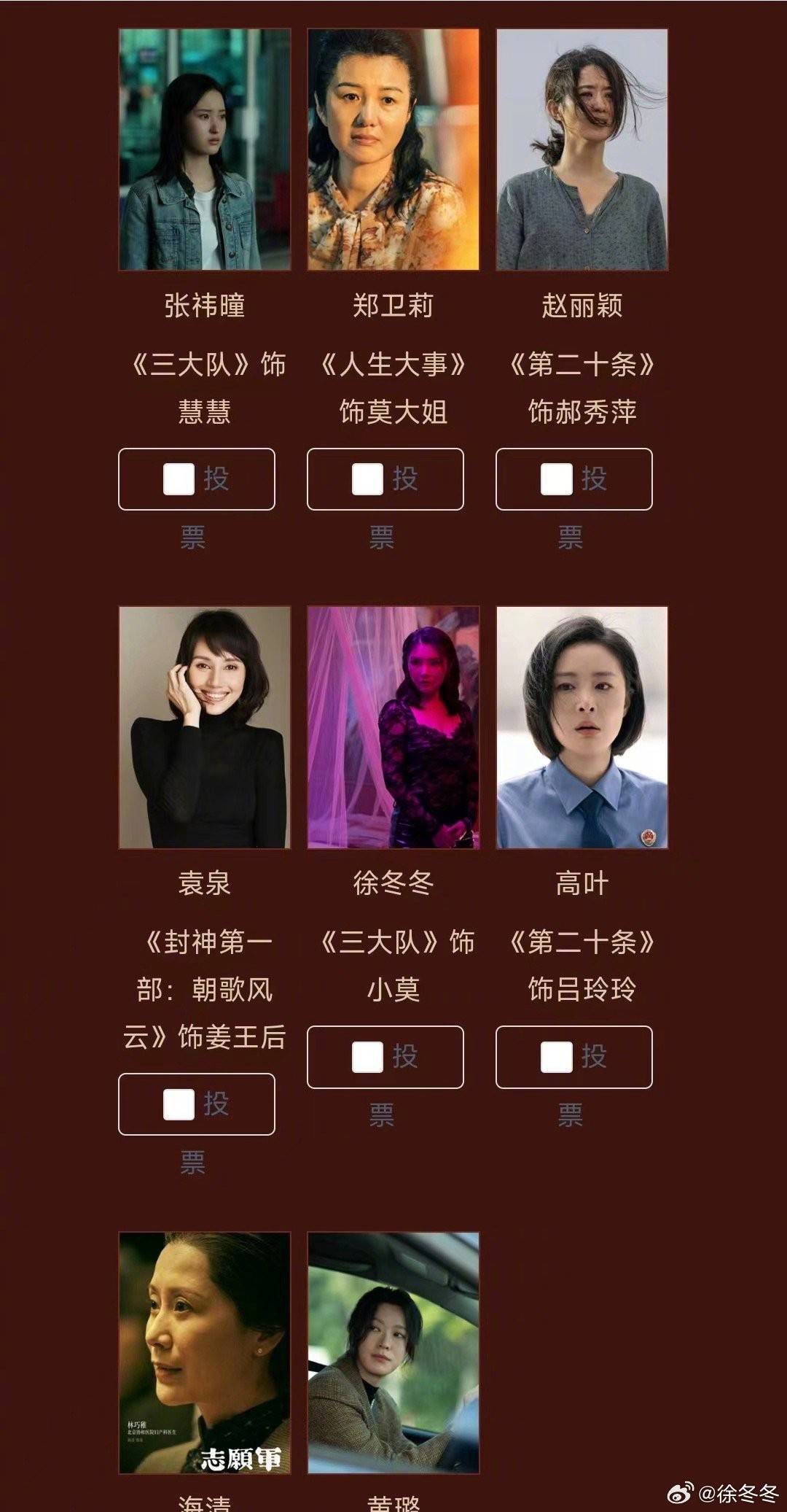 此次大众电影百花奖的入围名单也堪称强手如云,竞争异常激烈,包括万茜、邓萃雯、艾丽娅、张小斐、赵丽颖、袁泉、高叶、海清等等。徐冬冬能够被提名,同样是实力所致,毕竟,百花奖所“拼”的不仅仅是实力,也包括在观众中的知名度与影响力。对于在影视圈摸爬滚打的徐冬冬而言,此次入围,有着“精诚所至、金石为开”的非凡意义。