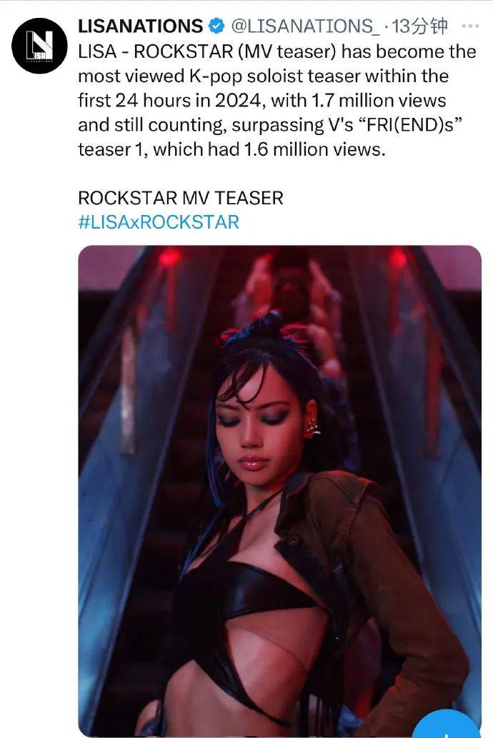 说是在2024 年的首24小时内成为播放量最高的 KPOP 单人预告片,播放量达到 170 万次;