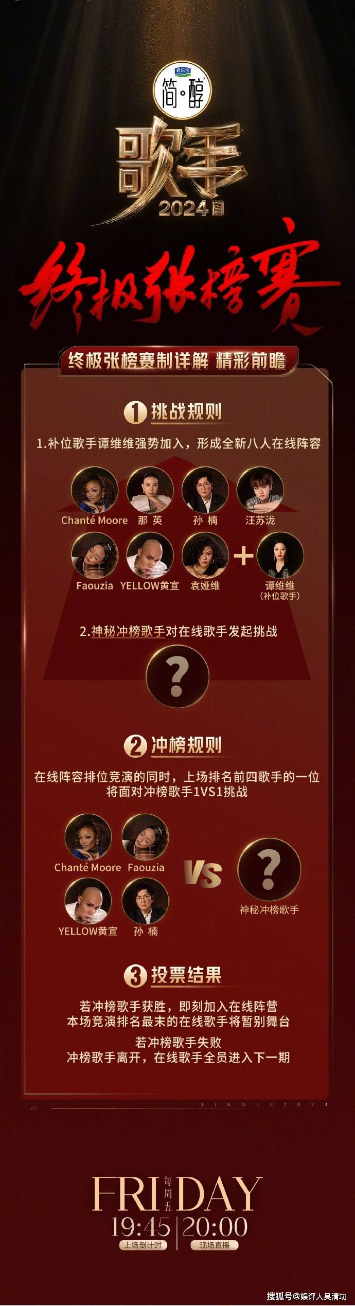 节目组完全可以从第七期走向正轨,重新变为张榜赛,然后第八期是揭榜赛,第九期是袭榜赛(冲榜赛)。但是第七期还是冲榜赛,第八期又变成了张榜赛。但是第八期不单纯是张榜赛,而是张榜赛和冲榜赛的结合。节目组除了官宣谭维维是补位歌手,还官宣了一个神秘女歌手冲榜。据悉,这个神秘女歌手来自哈萨克斯坦。