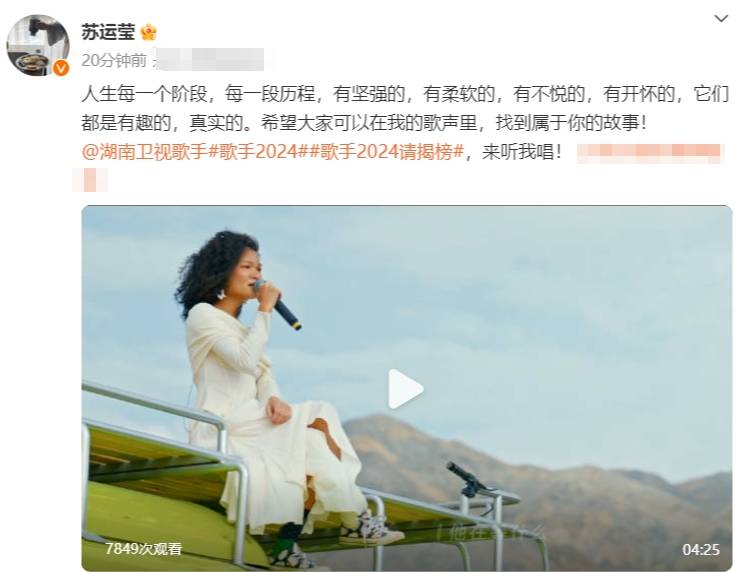 搜狐娱乐讯 27日,苏运莹在社交平台上发文报名参加《歌手》,她表示:“人生每一个阶段,每一段历程,有坚强的,有柔软的,有不悦的,有开怀的,它们都是有趣的,真实的。希望大家可以在我的歌声里,找到属于你的故事!《歌手2024》请揭榜,来听我唱!”