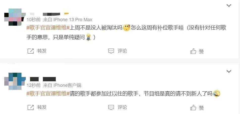 但也有人提出质疑:上周不是没人淘汰吗,为什么会有补位歌手?而且请的都是曾经参加过《歌手》节目的人,节目组是请不到新人了吗?