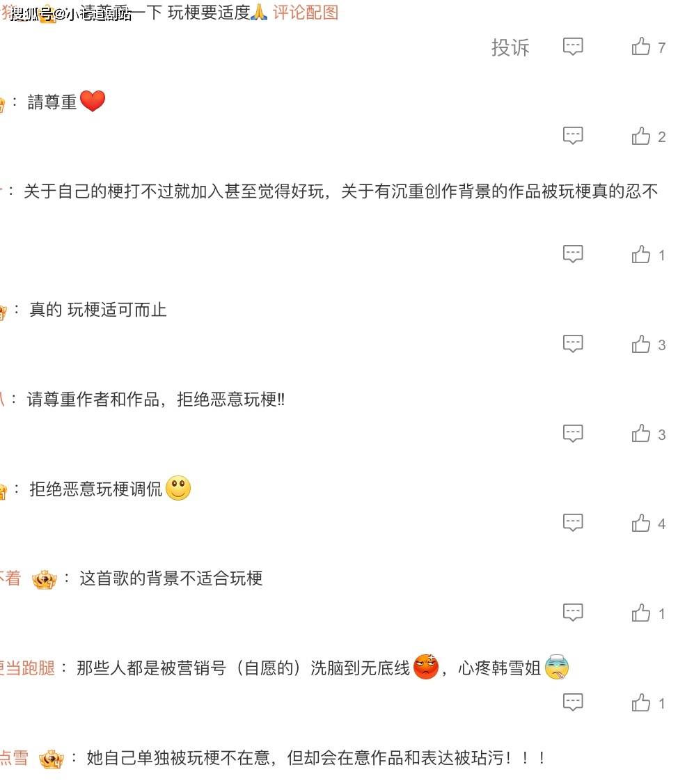 音乐的审美是自由的,每个听众都有发表听感、观感的权利,玩梗可以,但应适度。