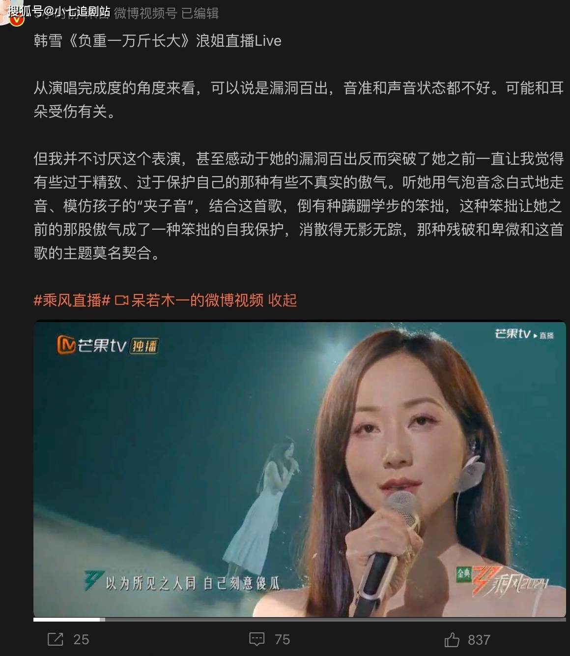能在直播状态下完成这首歌的情绪,并让我信服她唱的每一个字,这是最难得的。