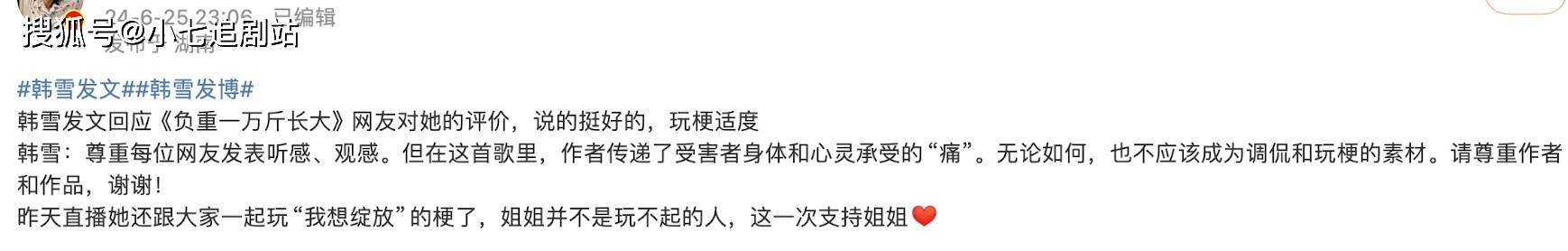 《负重一万斤长大》唱给受伤的女孩,又何尝不是唱给韩雪自己?